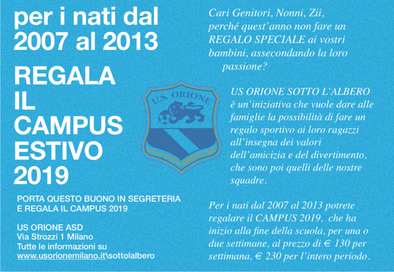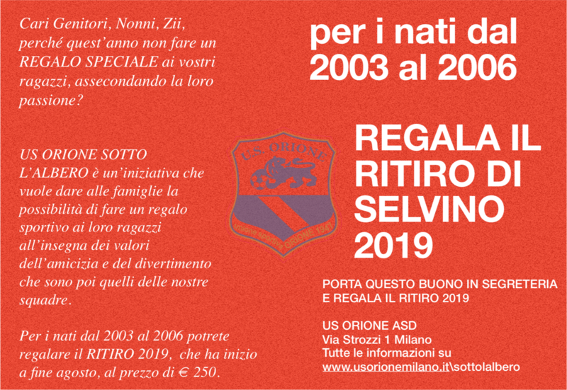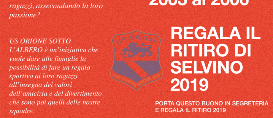 US ORIONE SOTTO L’ALBERO è un’iniziativa che vuole dare alle famiglie la possibilità di fare un regalo sportivo ai loro ragazzi all’insegna dei valori dell’amicizia e del divertimento, che sono poi quelli delle nostre squadre.
